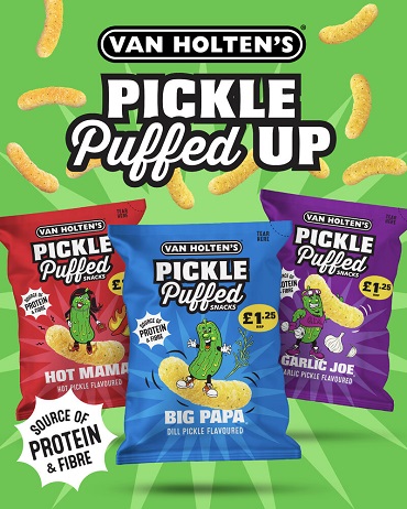 Whatever Brands has partnered with Van Holten’s®, the creator of the original Pickle-In-A-Pouch and one of America’s most recognisable pickle brands, to introduce Van Holten’s® Pickle Puffed Snacks, a new line of crunchy, packed-protein puffed snacks designed for today’s flavour-driven consumers.