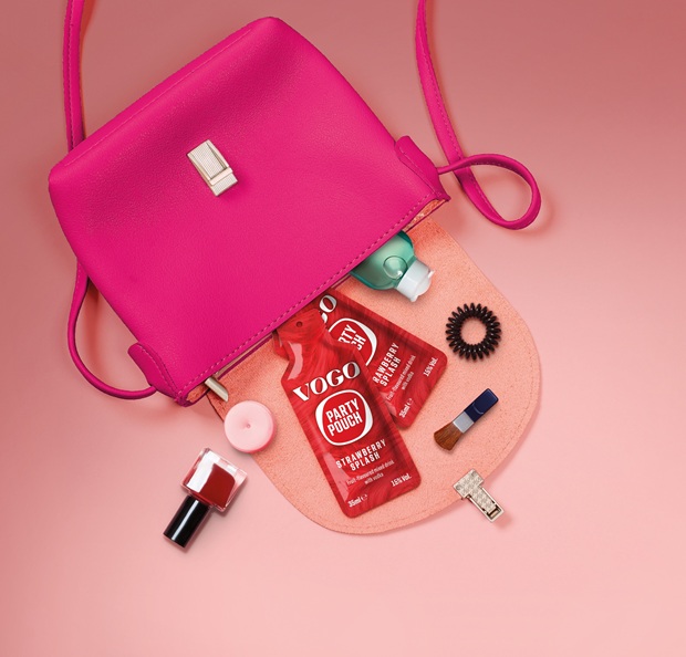 The packaging is influenced by handbag designs, appealing to the fashion crowd with the brand name inspired by ‘vogue’ and ‘on-the-go’. The unique leak-proof and slimline format makes them easy to carry in the smallest of spaces; purses, clutches, bumbags and bras. They’re ideal for consuming on the go (travelling in trains, trams, buses and taxis) and on arrival at the gig, festival, show or event.